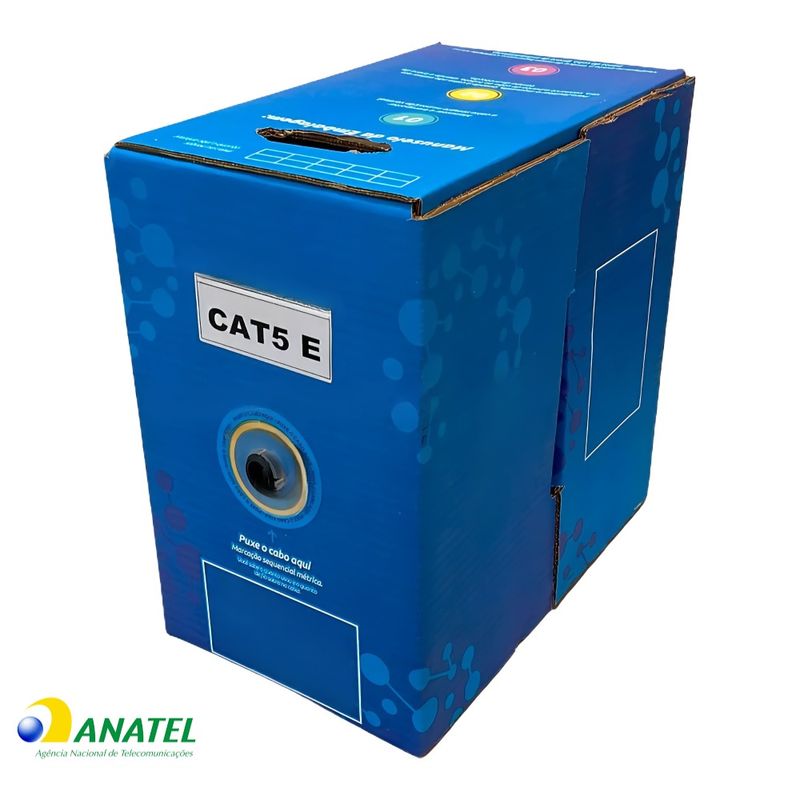 - Construção: U/UTP - 4 pares trançados compostos de condutores sólidos de cobre nu, 24 AWG, isolados em polietileno especial;