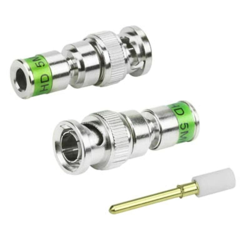 - Conector BNC Macho 5mm HD Connect Pro, geralmente utilizado para fazer a conexão do cabo coaxial hd de alta performance a uma entrada ou saída de vídeo, som ou tv, em dvr's e câmeras de segurança de alta resolução, onde a qualidade e acabamento são primordiais.