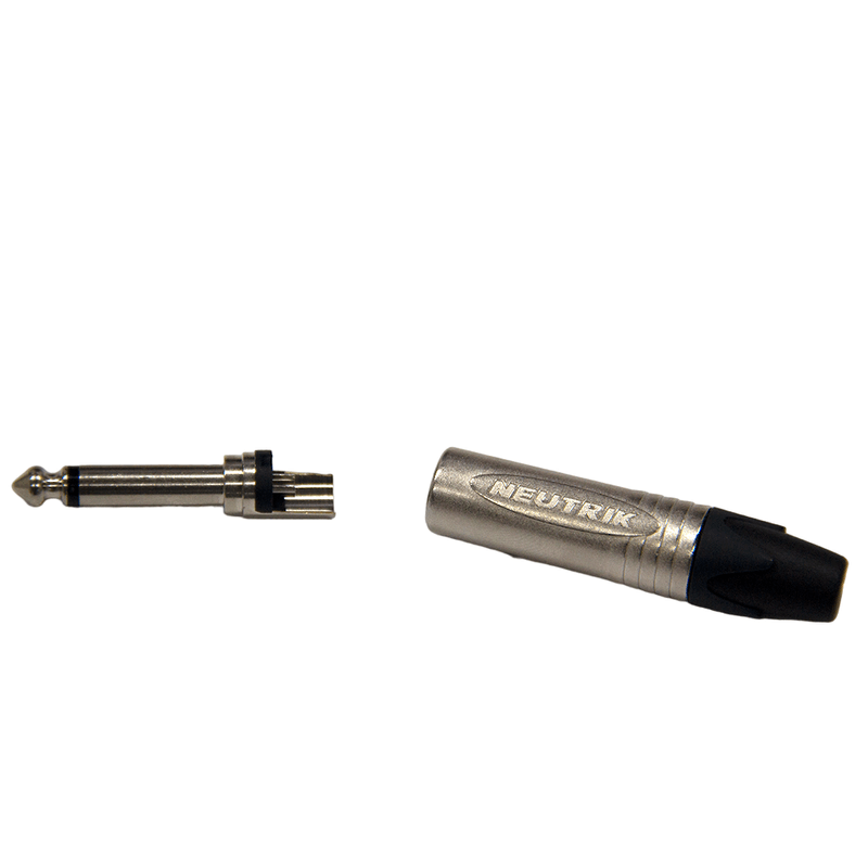 - Conector P10 mono macho de cabo/linha (TS) Neutrik, com corpo em metal cromo preto e contato banhado a ouro, ponta integrada em uma só peça (sem parafuso), design inovador com prensa, cabo interno para melhor isolamento e anel de metal com rosca interna para melhor fixação da bucha de acabamento para o cabo.