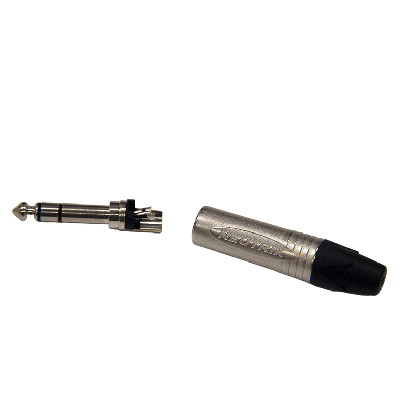 - Conector P10 estéreo macho de cabo/linha (TRS) Neutrik, com corpo e contato em metal niquelado, ponta integrada em uma só peça (sem parafuso), design inovador c/ prensa cabo interno para melhor isolação e anel de metal com rosca interna para melhor fixação da bucha de acabamento para o cabo.