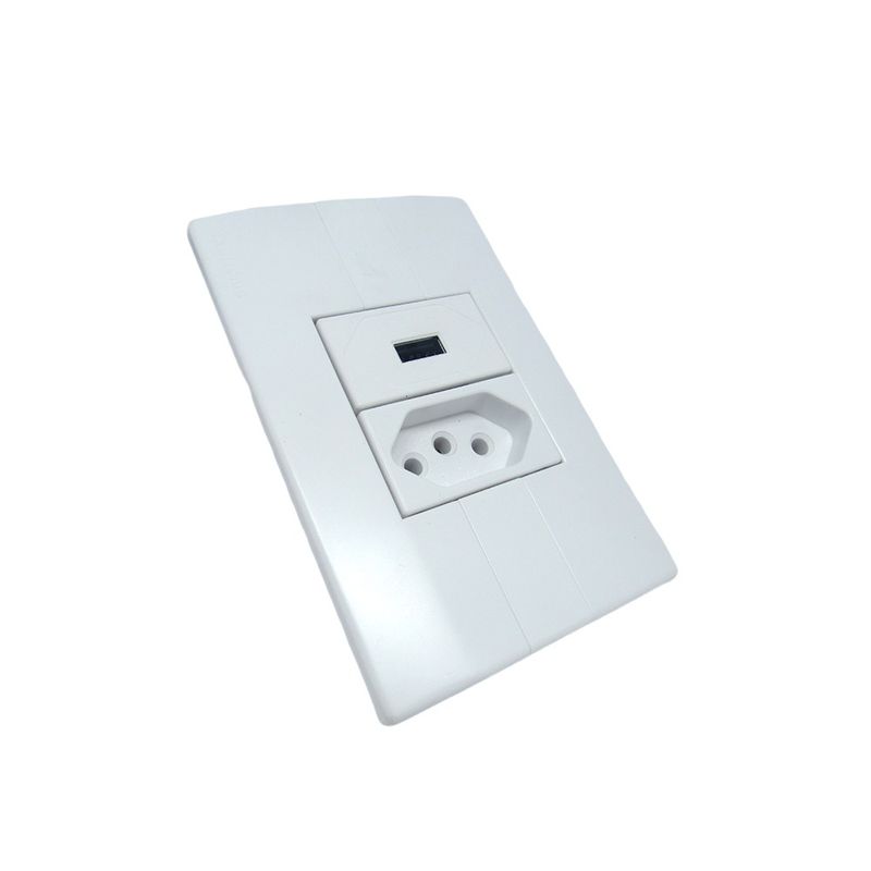 - Descrição: Espelho Modular 4 x 2 com Módulos 1 USB 2A e Tomada;