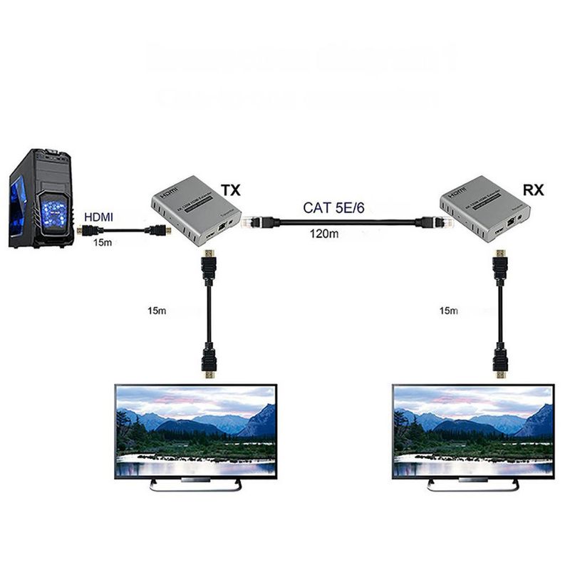 Extensor HDMI 4K 120 Metros com IR no TX/RX em Cascata