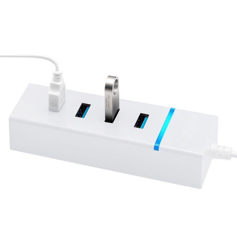 - O Hub USB 3.0 foi desenvolvido para quem busca mais conectividade, velocidade e segurança no dia a dia. Com um design moderno e leve, ele é perfeito para uso em escritórios, residências ou setups profissionais, oferecendo 4 portas USB 3.0 de alta performance capazes de transferir dados a até 5 Gbps, cerca de 10 vezes mais rápido que os modelos USB 2.0.