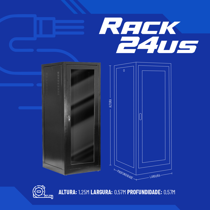 Rack de Piso Fechado Padrão 19" 24Us x 570mm Preto