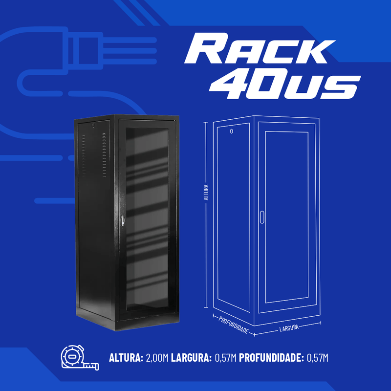 Rack de Piso Fechado Padrão 19" 40Us x 570mm Preto
