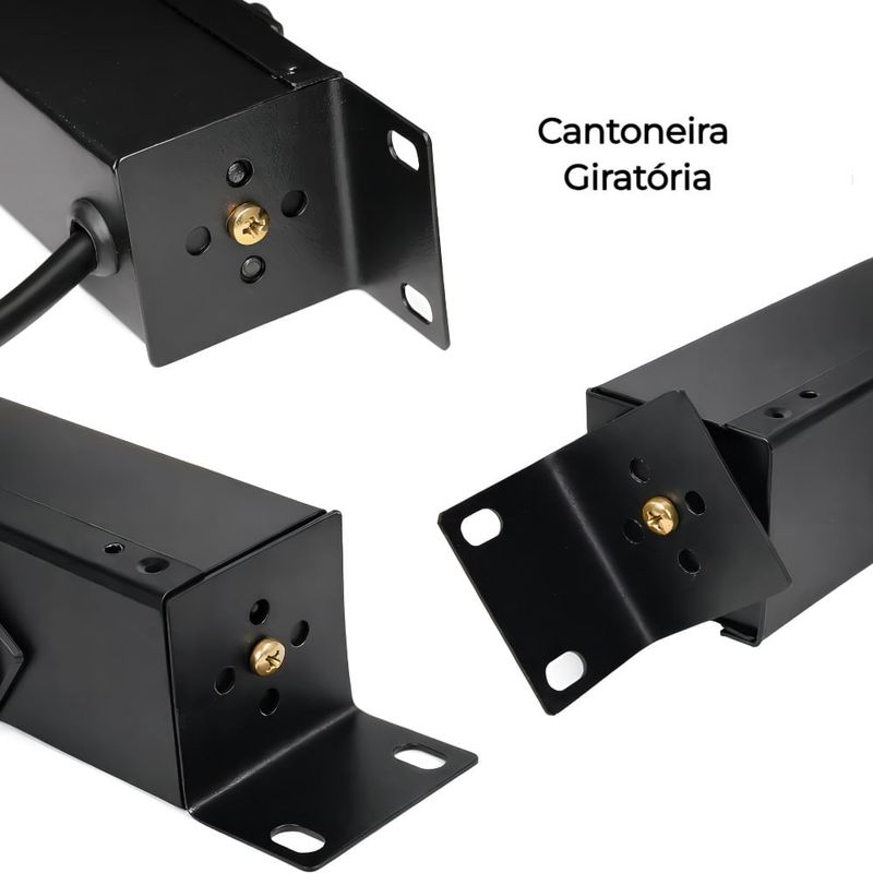 - Possui 10 tomadas elétricas no padrão brasileiro NBR 14136 (2P + T), com capacidade de até 10 amperes por tomada e tensão máxima de 250V, garantindo alimentação eficiente para diversos equipamentos. Seu acabamento na cor preto texturizado oferece maior resistência e durabilidade, além de excelente estética para ambientes profissionais.