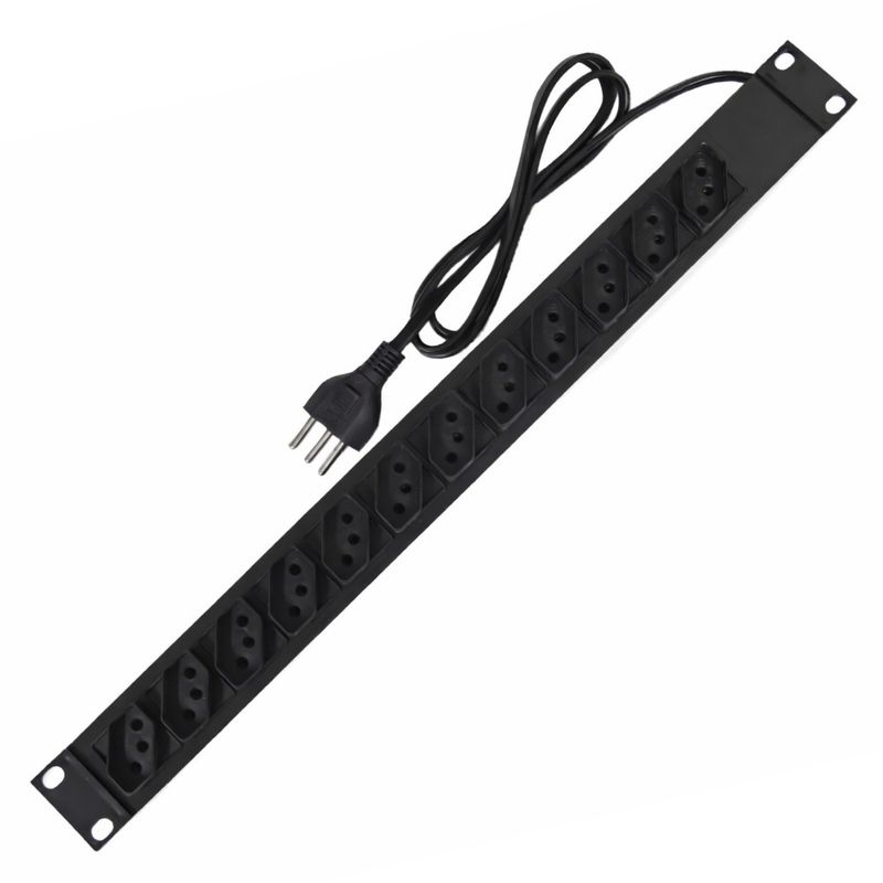 Régua/Calha Rack 19" ABS com 12 Tomadas 10A