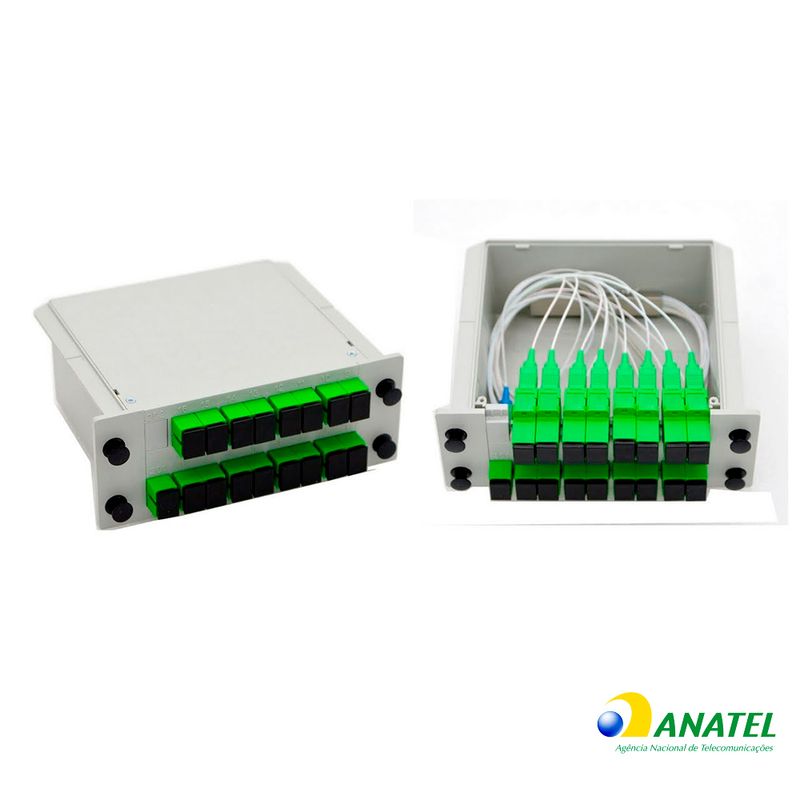 - Splitter Box ou Divisor Óptico realiza a divisão do sinal óptico de uma fibra para várias outras, proporcionando arquitetura ponto a multiponto, sendo subdivido para atendimento a diversos usuários em diferentes localidades.